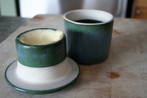 Well, it is nice to be appreciated for one’s details, isn’t it. Still, when I told him that I wanted a butter bell for our kitchen, he was skeptical. “It seems like makework,” he said, when confronted with the idea of stuffing cold butter into a dome that would fit, hanging, into a slightly larger glass canister with water in the bottom.