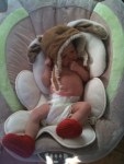 Ivy weighed a mere six pound and five ounces, a fuzzy headed blue eyed slip of a thing. But she’s a super eater — constant, efficient, happy — and she’s gaining like wildfire and pleasing her mother no end.